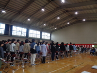 昨日体育館に紅白幕が設置され、椅子も並べられました。