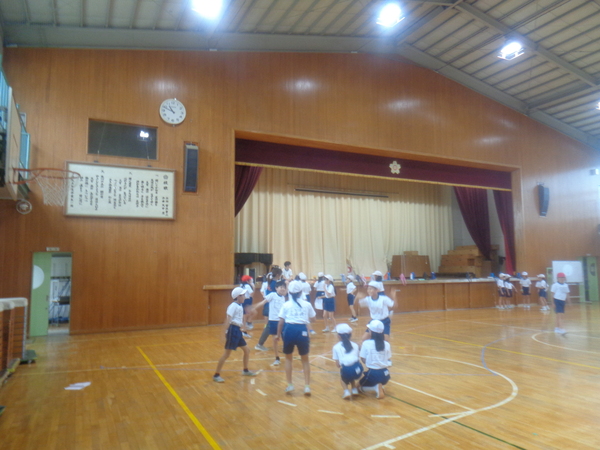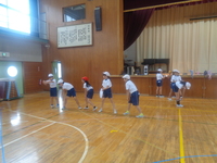 4年生が体育館で体育の授業に参加していました。
