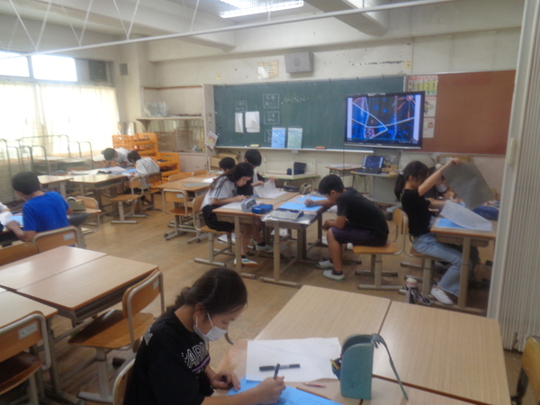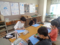4年生では、彫刻刀の使い方の確認をしており、丁寧に彫る練習をしていました。