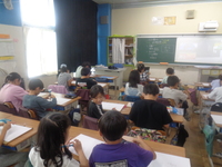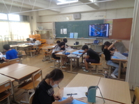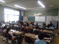 1年生の教室からは音楽に合わせて、リズムのよい鍵盤ハーモニカの演奏が聞こえてきました。