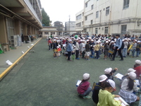 天気はやや小雨の模様でしたが、たくさんの保護者の方の協力をいただきながら学校を元気に出発していきました。