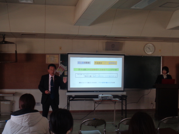 今日は在校生の保護者、新入学児童の保護者の方を対象に子育て講座が行われました。