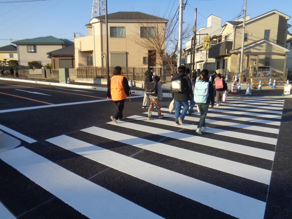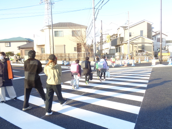 実際に車両が通るのは2月18日(水)14:00からですが、今日から関係する学区の児童たちが新通学路で登校を始めました。