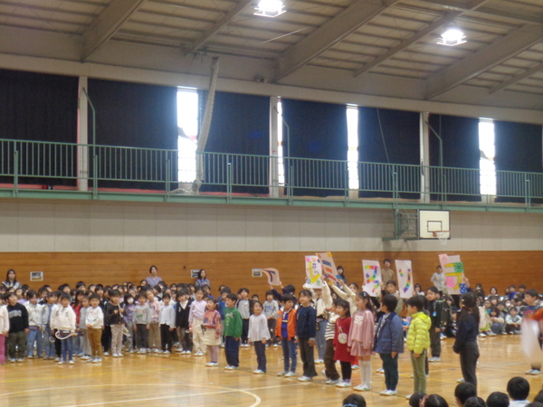 1年生から5年生まで、劇やおどり、歌など、様々な方法で6年生に感謝の思いを伝えていました。