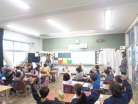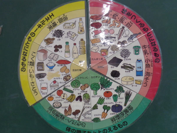 1時間目に、1年生が栄養士の先生をゲストティーチャーに、食育の学習をしていました。