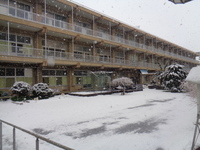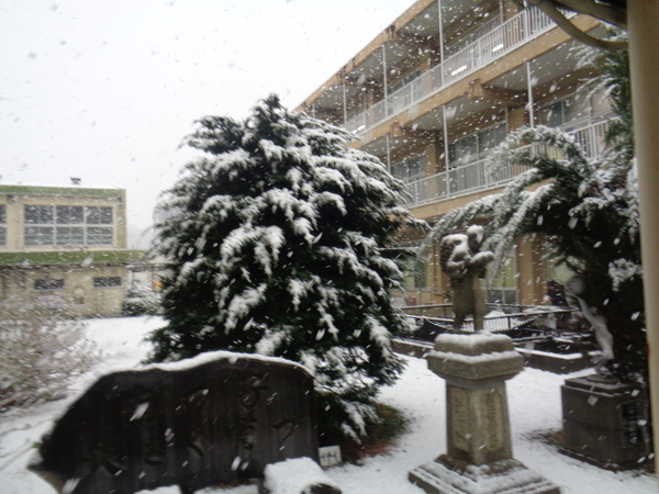 今日は朝から降っていた雨が雪に変わり、学校も雪景色となりました。