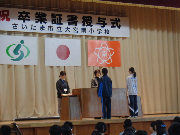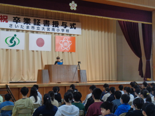 予行後は、5年生代表が6年生に送辞を送り、6年生からは答辞が送られました。
