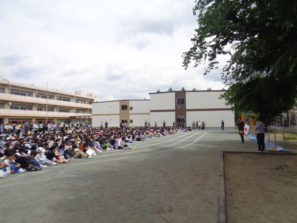 震度5弱以上の地震が発生した際のお子様のご家庭への引渡しを想定した引渡し訓練を行いました。緊急地震速報が鳴った後の一次避難行動、校庭への避難行動と、子どもたちは静かに落ち着いて行動できていました。
